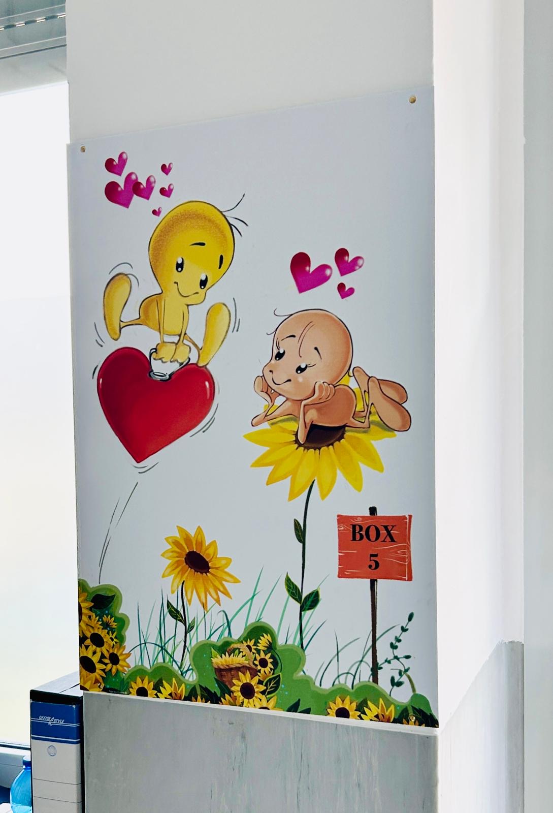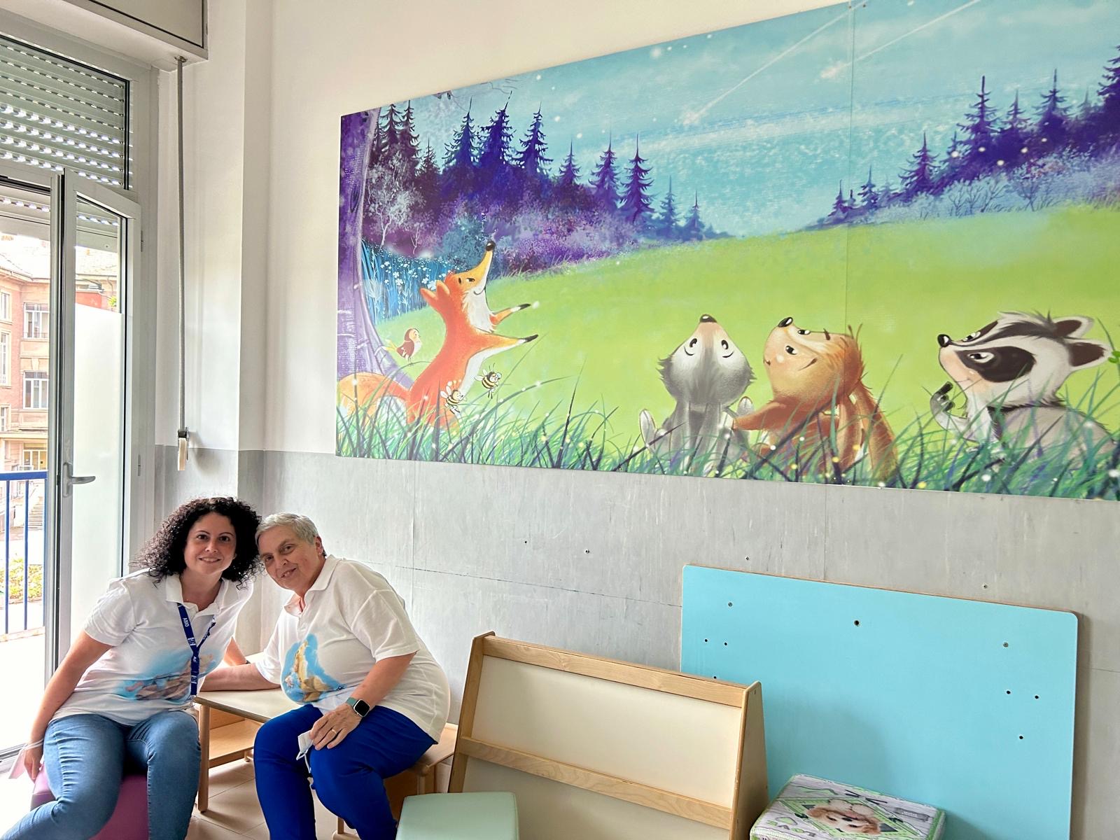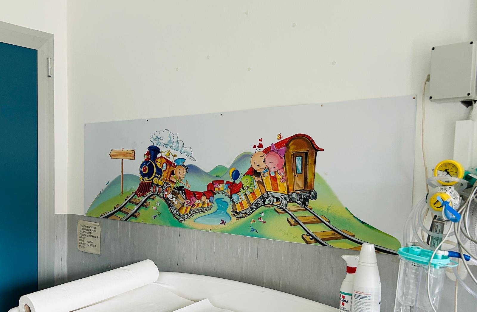 Un altro angolo dell’ospedale che si trasforma, si adatta e si veste di colore, per accogliere al meglio i piccolissimi e accompagnarli, passo dopo passo, nel loro cammino di crescita.