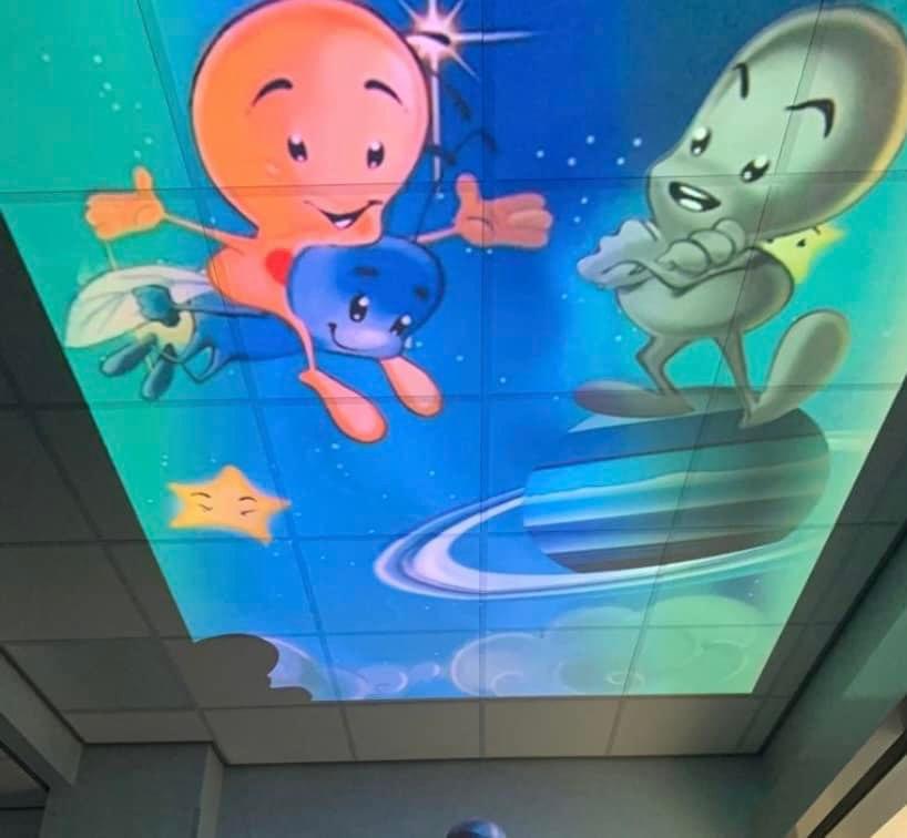 Ma la magia non finisce tra le pagine. Quando il bambino viene accompagnato verso la sala operatoria, ad accoglierlo nella presala ci sono proprio i personaggi della storia, proiettati sul soffitto in una dimensione animata e musicale, a colori. Lo aspettano, gli parlano, lo accompagnano. Insieme alla sua mamma o al suo caregiver, il piccolo assiste a un breve video emozionale: una continuità visiva e affettiva tra il racconto e la realtà, che lo aiuta ad affrontare il momento della separazione con maggiore serenità.