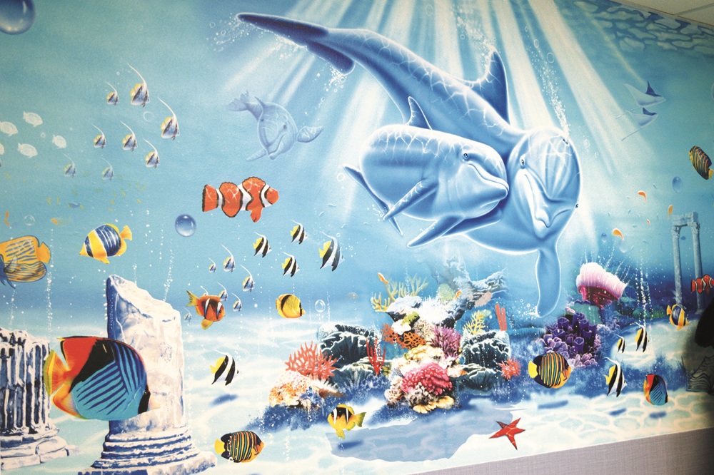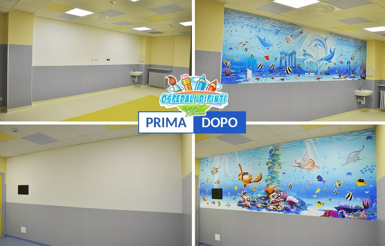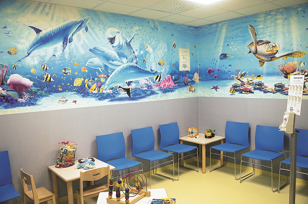 Abbiamo scelto un tema allegro e immersivo: un grande acquario, popolato da pesci sorridenti e colori vivaci. Un piccolo mondo immaginario capace di distrarre, incuriosire e strappare un sorriso.